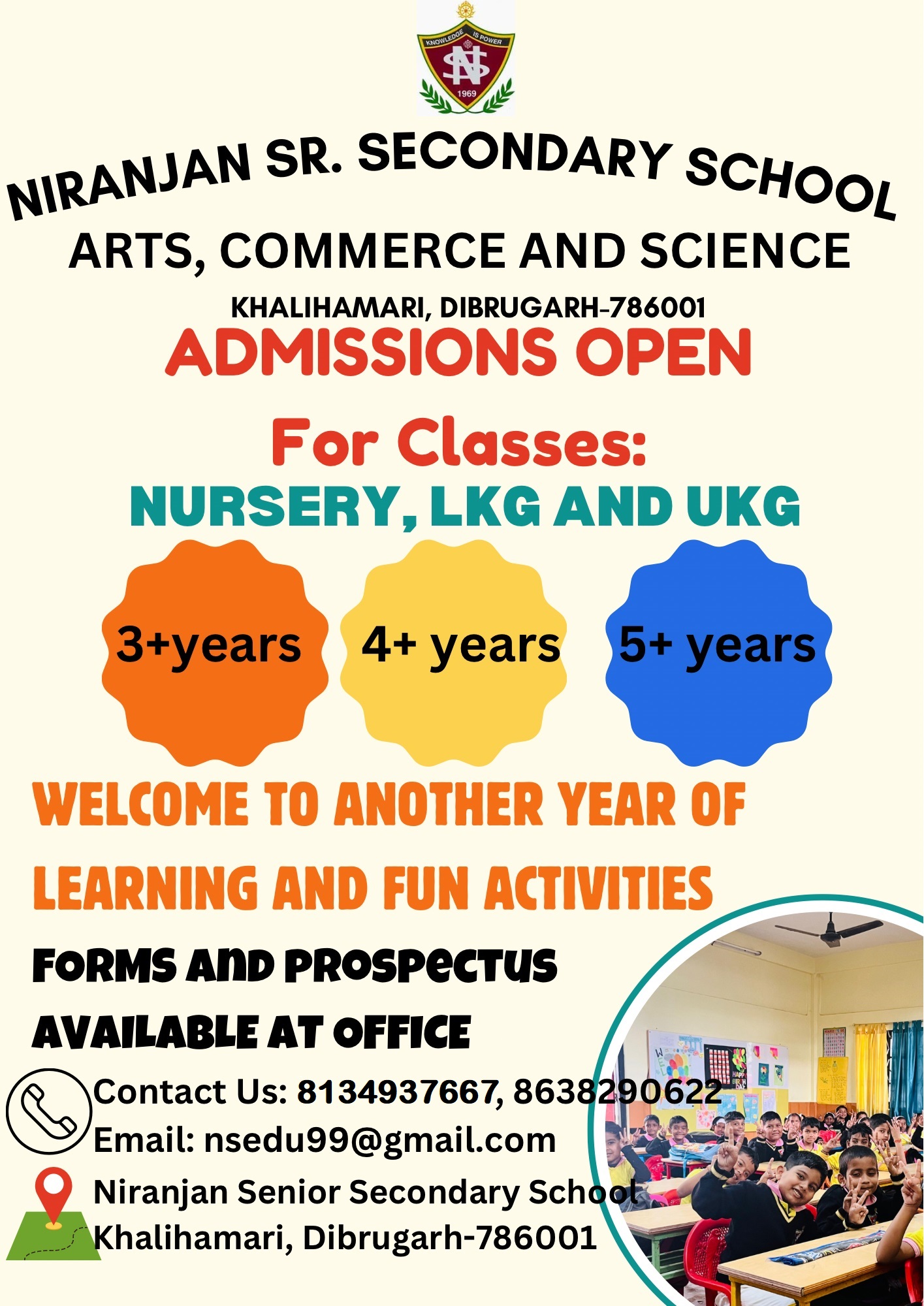 Welcome to Niranjan Senior Secondary School-ADMISSIONS OPEN FOR ACADEMIC SESSION 2025-2026. FOR CLASSES: (Nursery to IX) FORMS AND PROSPECTUS TO BE COLLECTED FROM OFFICE.